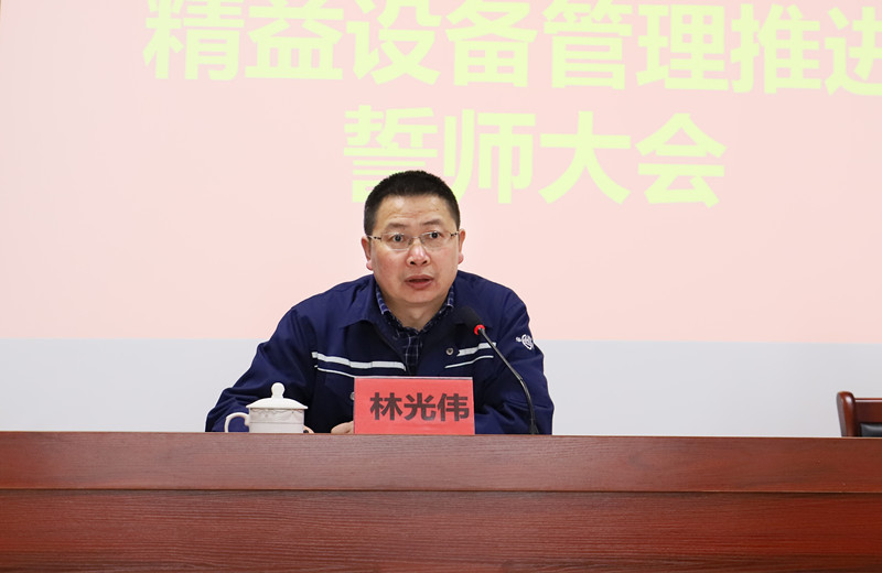 4月12日,公司召開精益設(shè)備管理(LTPM)項(xiàng)目誓師大會(huì),公司不當(dāng)班的班長(zhǎng)及以上管理人員等五十余人參加了大會(huì)??偨?jīng)理林光偉做動(dòng)員講話,總經(jīng)理助理潘國(guó)榮主持大會(huì)。