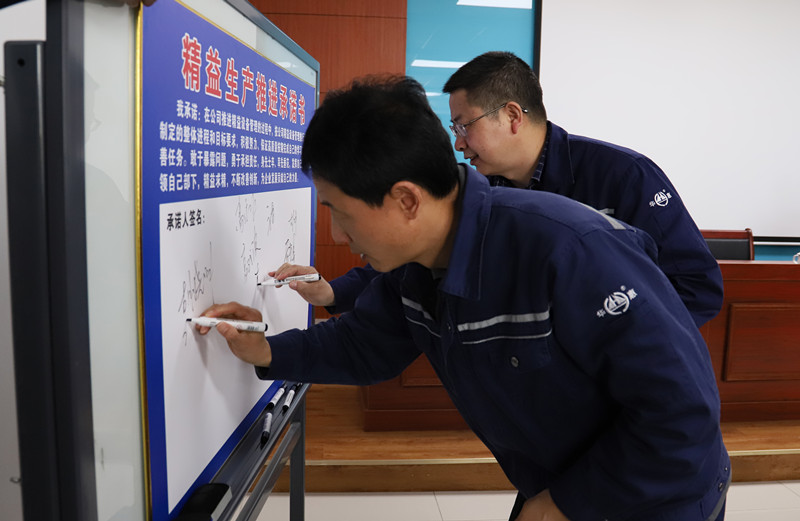 大會(huì)由總經(jīng)理助理潘國(guó)榮宣讀了精益設(shè)備管理項(xiàng)目組織架構(gòu)和職責(zé);體系辦主任余江濤和個(gè)人代表先后做了表態(tài)發(fā)言;本次精益設(shè)備管理項(xiàng)目的六個(gè)樣板區(qū)域主要LTPM推進(jìn)負(fù)責(zé)人及其他班長(zhǎng)以上管理人員進(jìn)行了宣誓,承諾:帶領(lǐng)本車間全體員工,堅(jiān)決執(zhí)行公司精益管理相關(guān)管理規(guī)定,做好精益管理相關(guān)工作,推動(dòng)精益管理在公司范圍內(nèi)廣泛和深入的開展,達(dá)到并超越精益管理的標(biāo)準(zhǔn)要求;全體參會(huì)人員現(xiàn)場(chǎng)簽下承諾書。